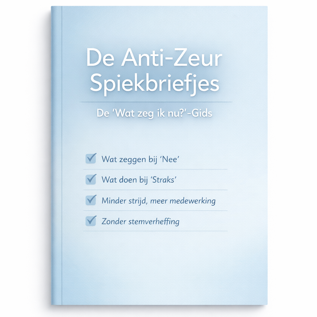 Weet u niet wat u moet zeggen als uw kind 'Nee' of 'Straks' zegt? Vink dit vakje aan voor de 'Wat zeg ik nu?'-Spiekbriefjes. Exacte zinnen en scripts die u kunt gebruiken om weerstand direct om te buigen naar medewerking, zonder stemverheffing.